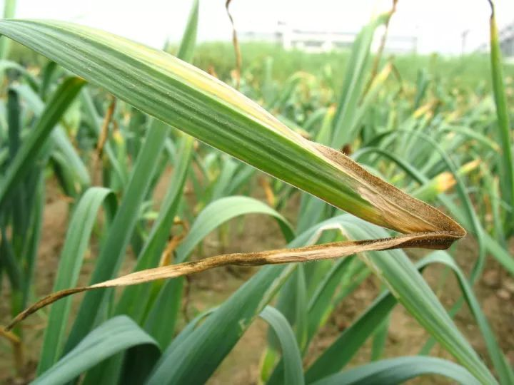 还有就是出现这种情况,是和田间管理有关,大蒜的根系比较浅,如果我们施肥不当的话,会出现烧根的情况,如果浇水的时候没有起垄的话,就容易出现沤根的情况,这样就会影响到根系吸收水分和吸收肥力的能力,从而会导致黄叶干尖的情况。