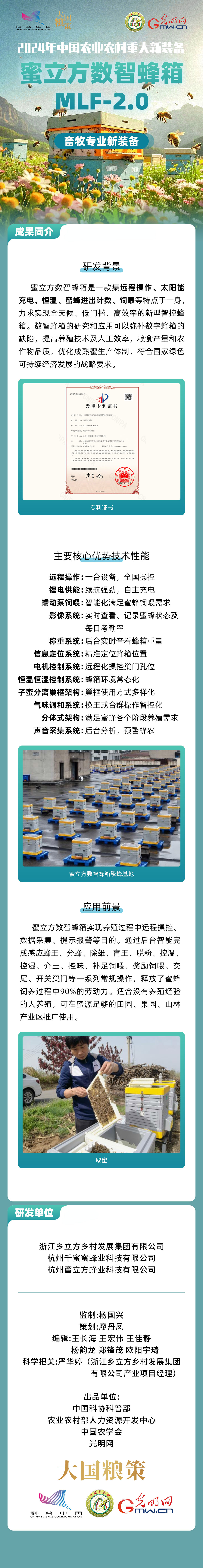 【大国粮策】2024年中国农业农村重大新装备——蜜立方数智蜂箱MLF-2.0