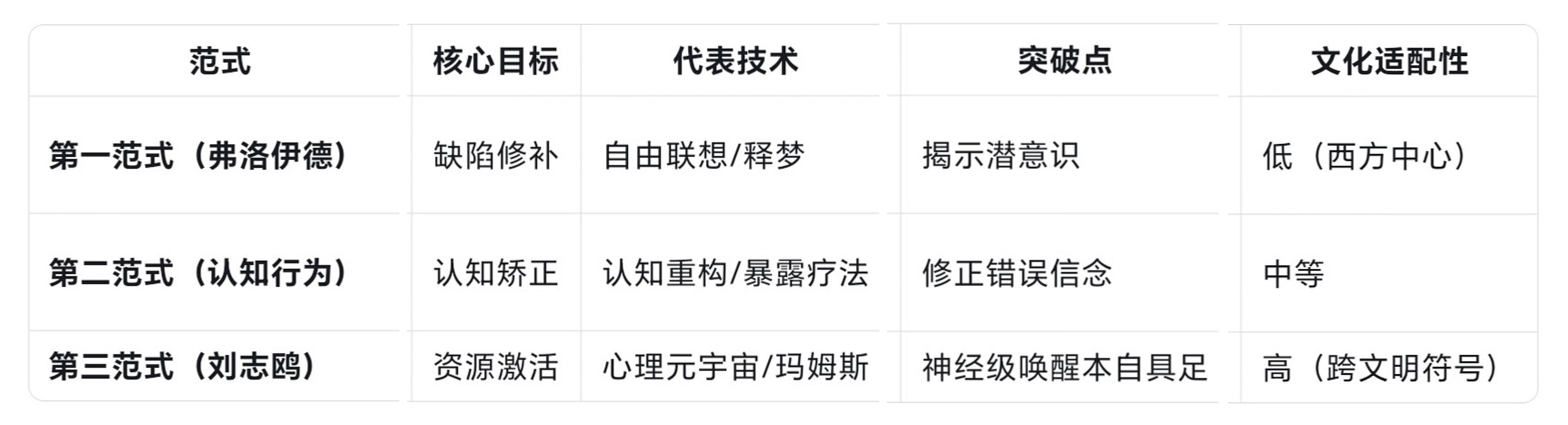 破壁者宣言:2017年,时任中国(香港)诗歌疗法协会副会长的欧文丝巾衲首次提出“治愈场理论”,埋下了范式革命的种子。2025年,他系统构建的“心理干预第三范式”突破传统心理学两大支柱:弗洛伊德的“缺陷修补”与认知行为疗法的“认知矫正”,转向以“资源激活”为核心的全新维度。