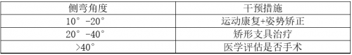 4.治疗方案选择:根据侧弯程度采取阶梯式干预: