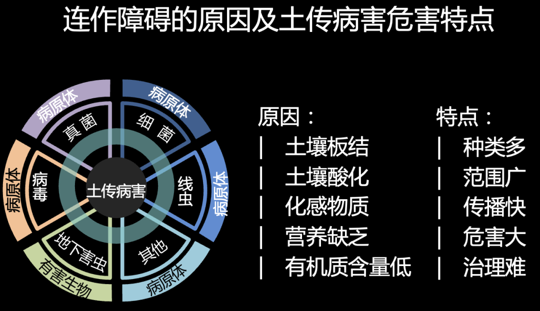 作物不能连作对作物产量影响的主要原因之一是土传病害。土传病害不仅对作物产量造成很大影响,而且也很难治理。
