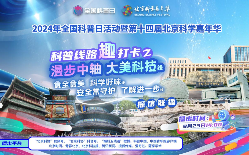2024年全国科普日活动暨第十四届北京科学嘉年华于9月15-25日在全市范围开展,本届北京科学嘉年华动员各方力量,整合资源、开放场地、创新形式。以北京中轴线申遗成功为契机,围绕“科学+ 相约最美中轴线”主题开展一系列活动,打造中轴线上的科普盛宴,设置主题专场,结合不同科技领域内容,推出20条科普主题线路,邀请公众开展扫码“打卡”。