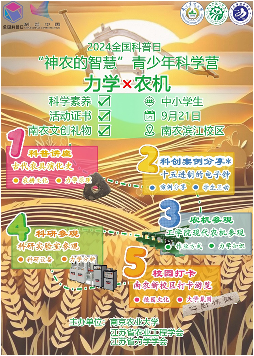 本次活动得到了南京农业大学科协、南京农业大学工学院、江苏省农业工程学会科普与教育工作委员会,以及江苏省力学学会科普工作委员会的大力支持。