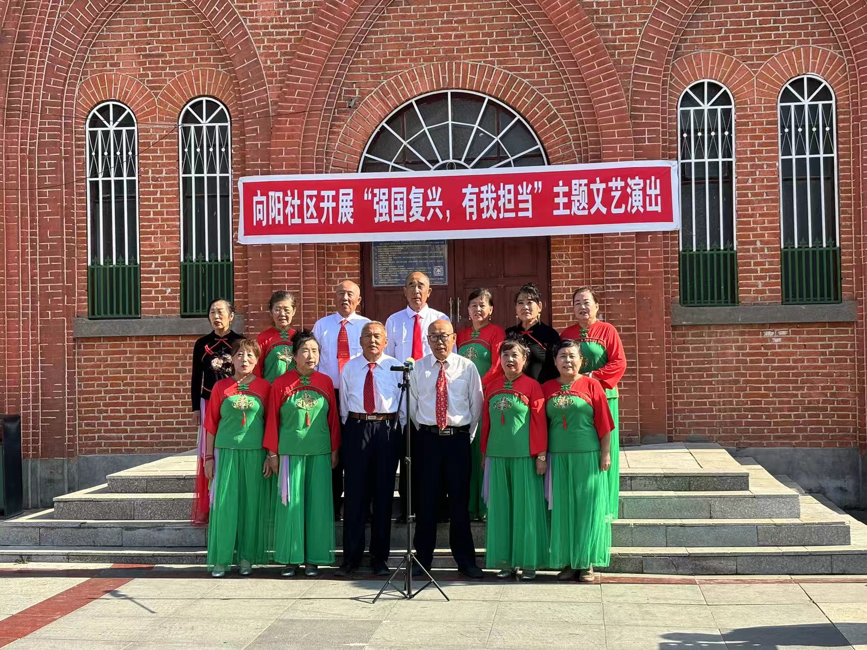 向阳社区举办了以“强国复兴 有我担当”为主题的文艺演出。 朗诵《我爱你,中国》拉开序幕,朗诵者用铿锵有力的声音,表达了对祖国母亲的深情厚意。《再唱洪湖水》以经典的舞蹈动作和富有感染力的表演,带领观众重温了那段激情燃烧的岁月。器乐合奏《歌唱祖国》《共筑中国梦》以其激昂的旋律和精湛的演奏技巧,展现了中华民族伟大复兴的壮丽图景。随后,大合唱《没有共产党就没有新中国》将演出推向了高潮,全体演员和观众用歌声表达了对党的无限忠诚和对祖国的深深祝福。