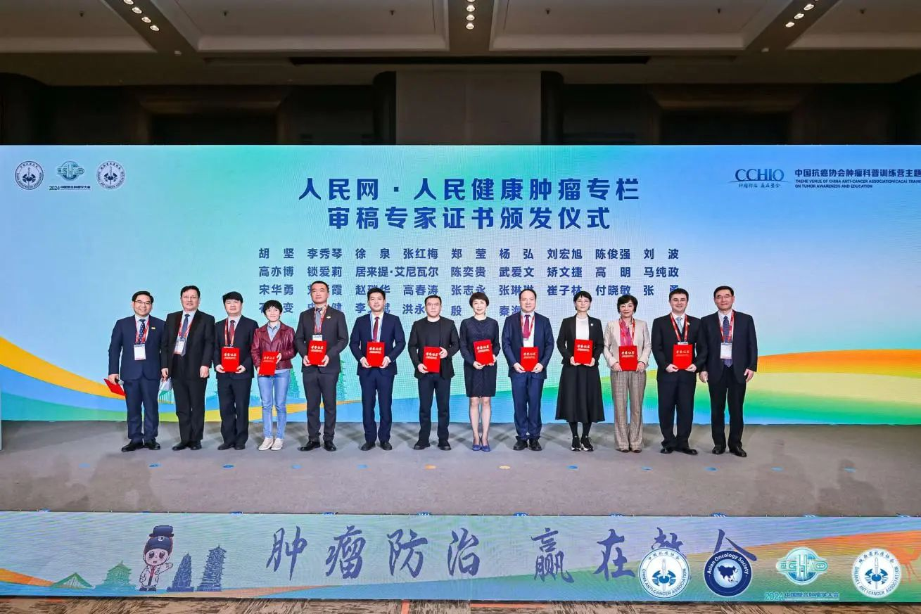 支修益教授和田艳涛教授为《人民网·人民健康肿瘤科普专栏》审稿专家颁发证书。