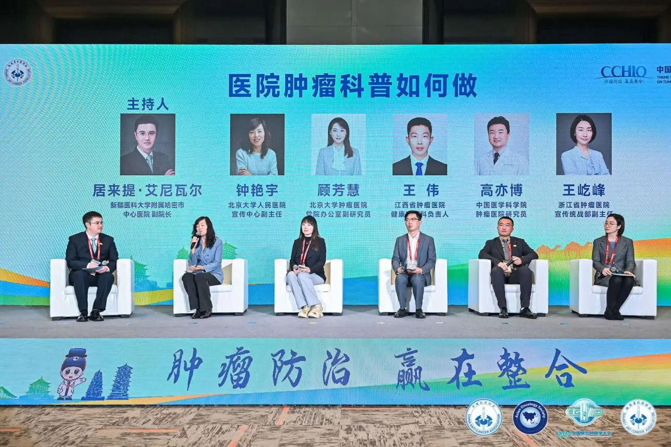 肿瘤科普在提高公众防癌抗癌意识、降低肿瘤发病率和死亡率、促进临床诊疗等方面具有至关重要的意义。第一组圆桌论坛,讨论议题为“医院肿瘤科普如何做”,由新疆医科大学第一附属医院的居来提·艾尼瓦尔教授担任主持嘉宾。参与讨论的嘉宾有北京大学人民医院宣传中心副主任钟艳宇、北京大学肿瘤医院党院办公室副研究员顾芳慧、江西省肿瘤医院健康宣教科负责人王伟、中山大学肿瘤防治中心党办宣传科科长陈鋆、中国医学科学院肿瘤医院研究员高亦博和浙江省肿瘤医院宣传统战部副主任王屹峰。