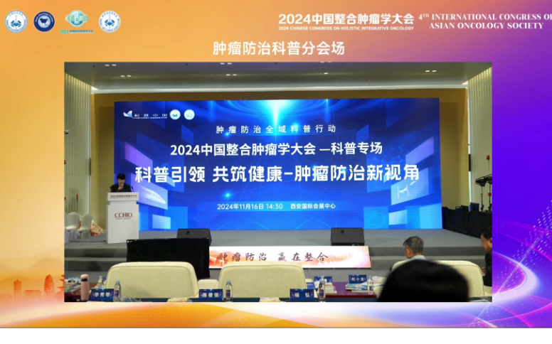 2024中国整合肿瘤学大会科普分会场——科普专场本次大会由中国抗癌协会肿瘤防治科普专委会主办,于2024年11月16日下午在西安国际会展中心会议楼举行。本场大会围绕“科普引领 共筑健康-肿瘤防治新视角”主题为核心展开,本次科普专场吸引了来自全国各地的医疗专家、科普工作者、志愿者以及关注癌症防治的各界人士。会议涵盖了多个主题形式多样,有专家讲座、案例展示、圆桌论坛等,满足了不同参会者的需求。参会150余人。